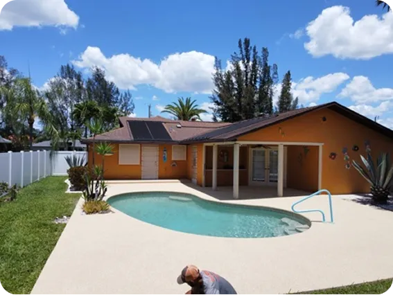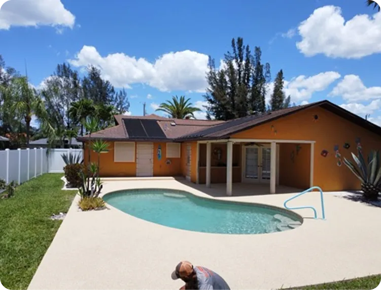 “Ian provided me with an estimate to apply the Soft Crete product to approximately 1600 sf area including walkways, patios, and a lanai. The crew arrived on time, cleaned and prepped the area in about 3 hours. The product was applied to the entire area in 2 days, despite extreme heat and humidity. They were very conscientious and professional and worked diligently while being very respectful of the property. The product was applied to various surfaces including stamped concrete, patio pavers, and small gap areas that were filled with stone. The result was transformative. It blended the various disjointed surfaces into a smooth, continuous finish, making cracks and seams disappear."
