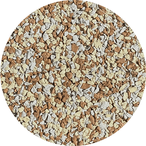 Soft Crete is a proprietary blend of Hi-grade EPDM rubber granules and clear UV stable resin. Mixed onsite and poured in place, Soft Crete is hand troweled to a smooth finish. Once cured, Soft Crete is a uniform surface with high tensile strength. Soft Crete is 100% slip resistant, even when wet, anti-fatigue, shock absorbent, water permeable and flood resistant.